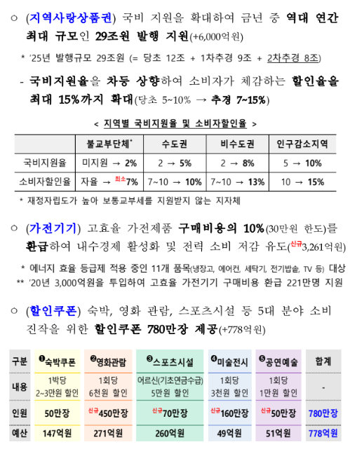 • 지역화폐 할인율 상향: 지역사랑상품권 할인율이 역대 최고 수준으로 조정될 예정입니다.