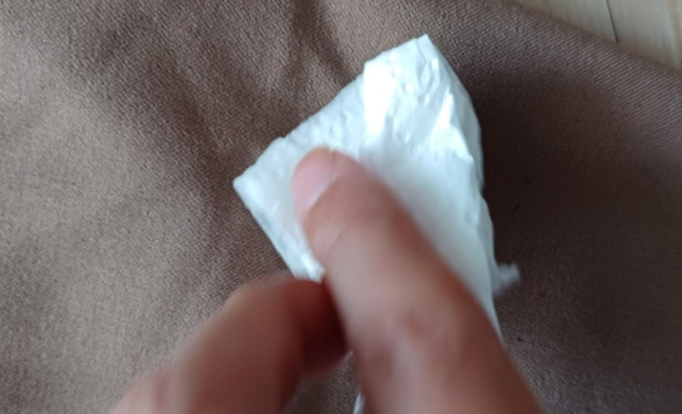 식용유의 기름얼룩 없이 옷에 묻어 있던 송진이 깨끗하게 제거되었습니다.