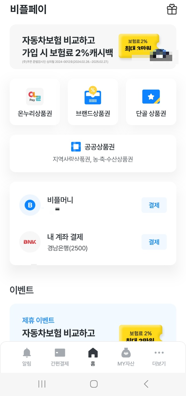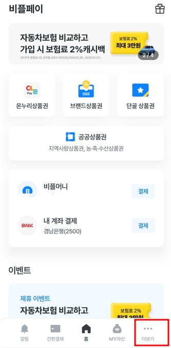 1단계 : 비플페이 홈화면에서 '공공상품권' 클릭