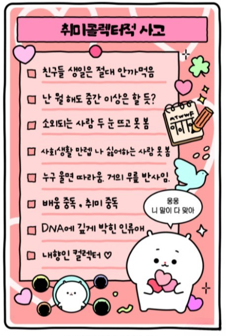 애정둥이적 사고 ENFJ / 취미콜렉터적 사고 ESFJ