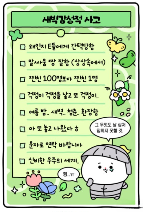 새벽감성적 사고 INFP / 힐링만렙적 사고 INFJ