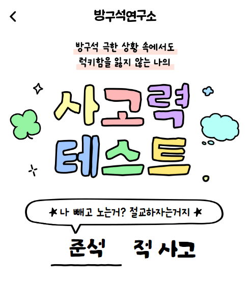 방구석 연구소에서 출시한 MBTI를 기반으로 하는 심리검사 'ㅇㅇ적 사고 테스트'에 대해서 알아보도록 하겠습니다. 원영적사고 테스트, ㅇㅇ적사고 테스트, ㅇㅇ적 사고, ~적 사고로 검색하는 LG와 방구석 연구소가 합작한 MBTI 기반 검사 지금