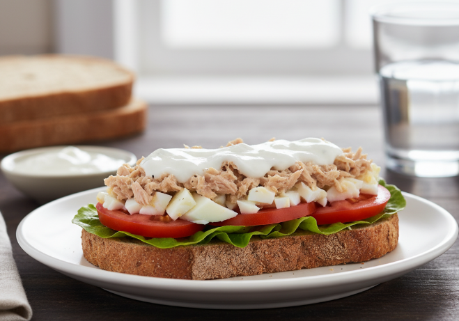 2. 참치 오픈 샌드위치 (통밀빵 활용) 🍞