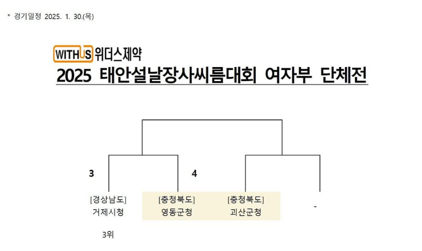 1월 30일(목) ‘위더스제약 2025 태안설날장사씨름대회’ 여자부단체전 대회결과 영동군청팀이 우승을 차지하였습니다. 축하드립니다.